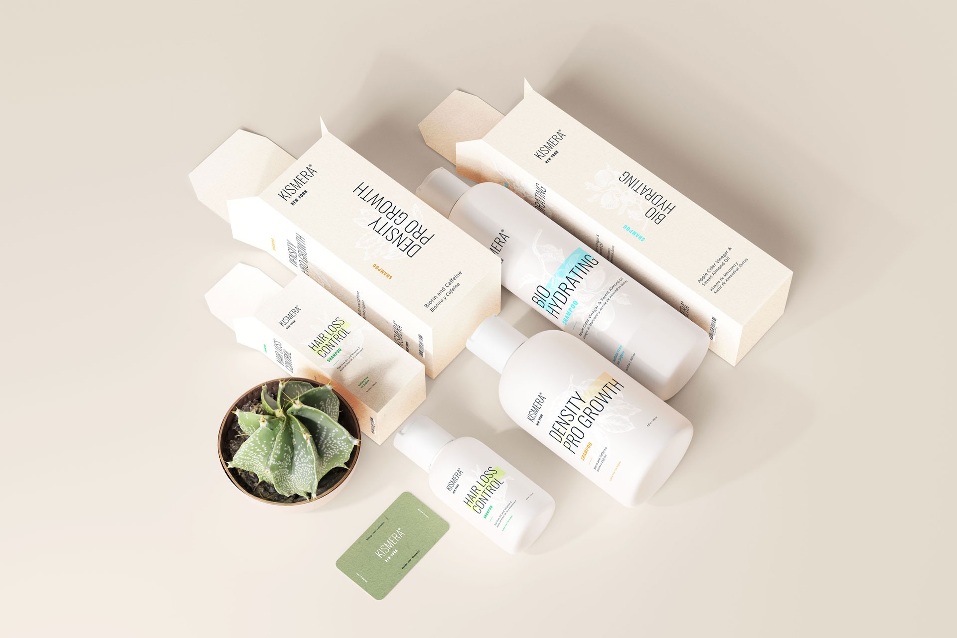 Kismera® is a premium hair-care brand trusted in the salon industry for its effective and specialized product lines. With a mission to address a wide range of hair-care needs, whether curative, hydrating, or restructuring. They offer an extensive selection of shampoos, conditioners, treatments, lotions, and colorants. Our partnership began when Kismera® aimed to attract new customers and bring consistency to their existing product lines through cohesive branding.